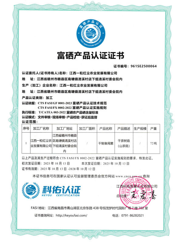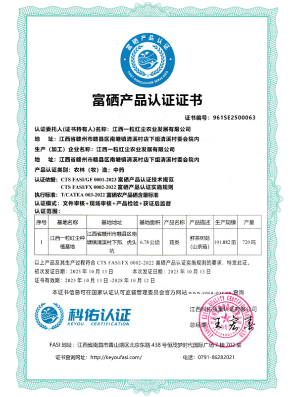 江西一粒紅塵農業發展有限公司是一家總部位于江西省贛縣的現代農業多元型企業,專注于食用菌的研發種植、深加工、貿易、研教培農文旅等全產業鏈發展。公司秉承“健康綠色、共享共贏”的核心價值觀,致力于引領鄉村振興之路,旨在成為......